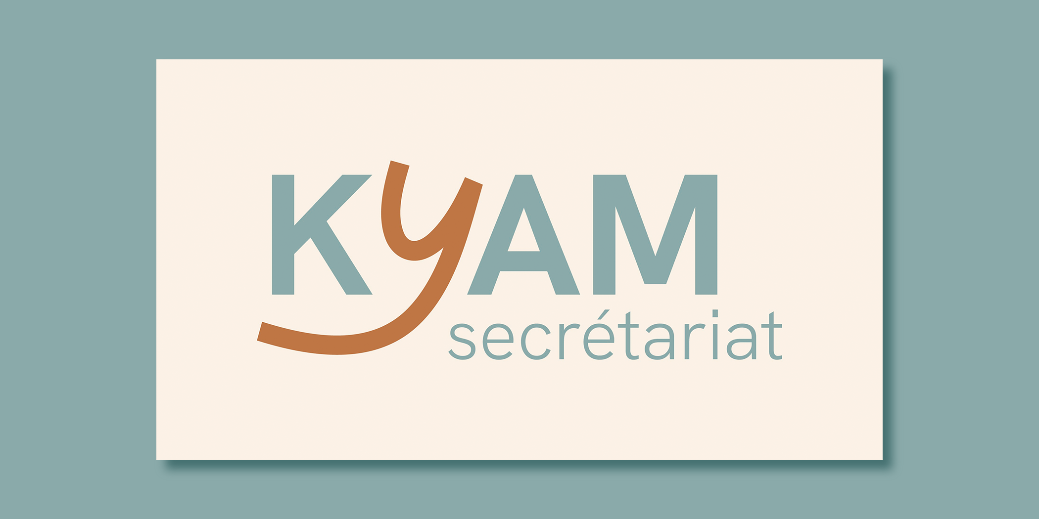 Oui, nous travaillons aussi avec des "petites" structures ou des indépendants : pour Kyam secrétariat, une secrétaire indépendante du Morbihan, nous avons créé un logo que nous avons développé sur différents supports.